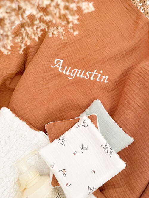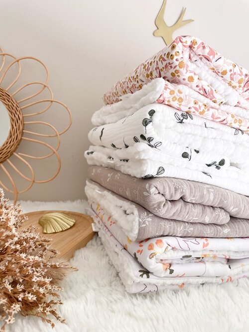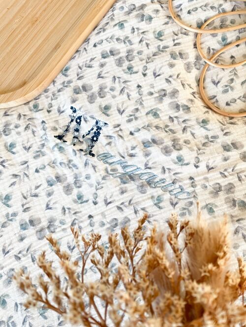 Couverture chaude broderie fleurie Ciel EUCALYPTUS