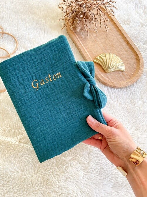 Protège Carnet de santé brodé Blanc MOUTARDE