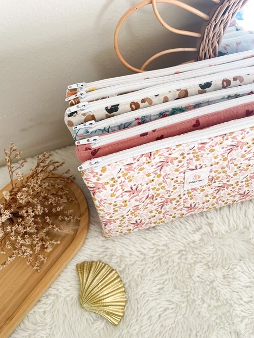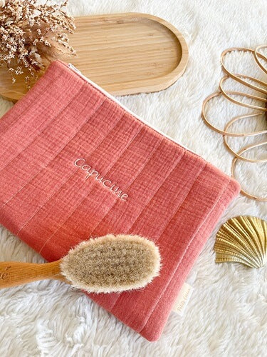 Trousse de toilette matelassée brodée Doré BOUQUET