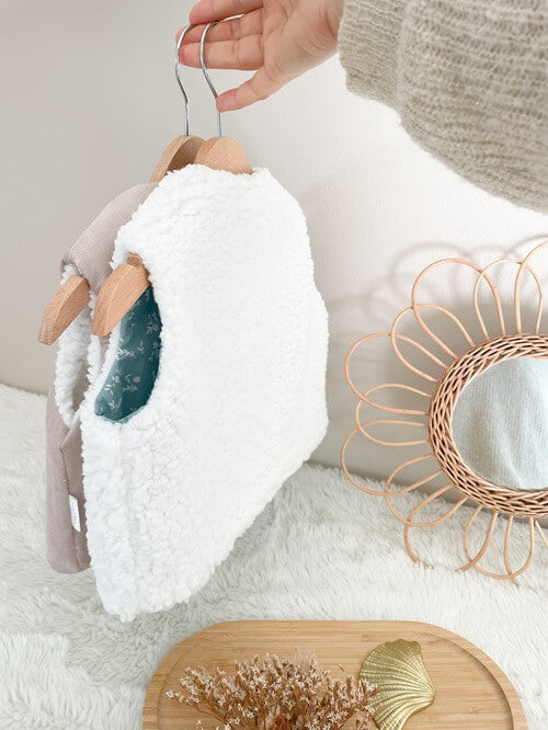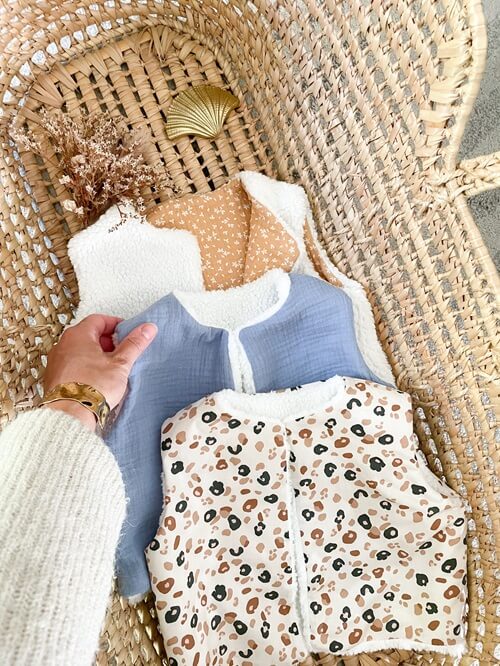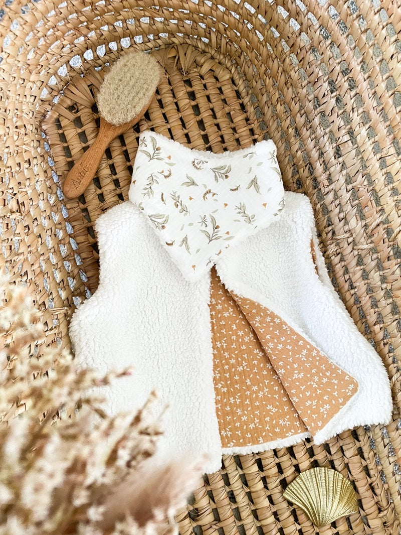 Cette jolie veste unisexe est un incontournable de la garde de robe de votre tout petit cette année. D'un côté en fourrure écrue, vous pourrez choisir l'autre tissu selon vos gouts et ainsi offrir à bébé la possibilité de le porter différemment. Le réversible est si utile !