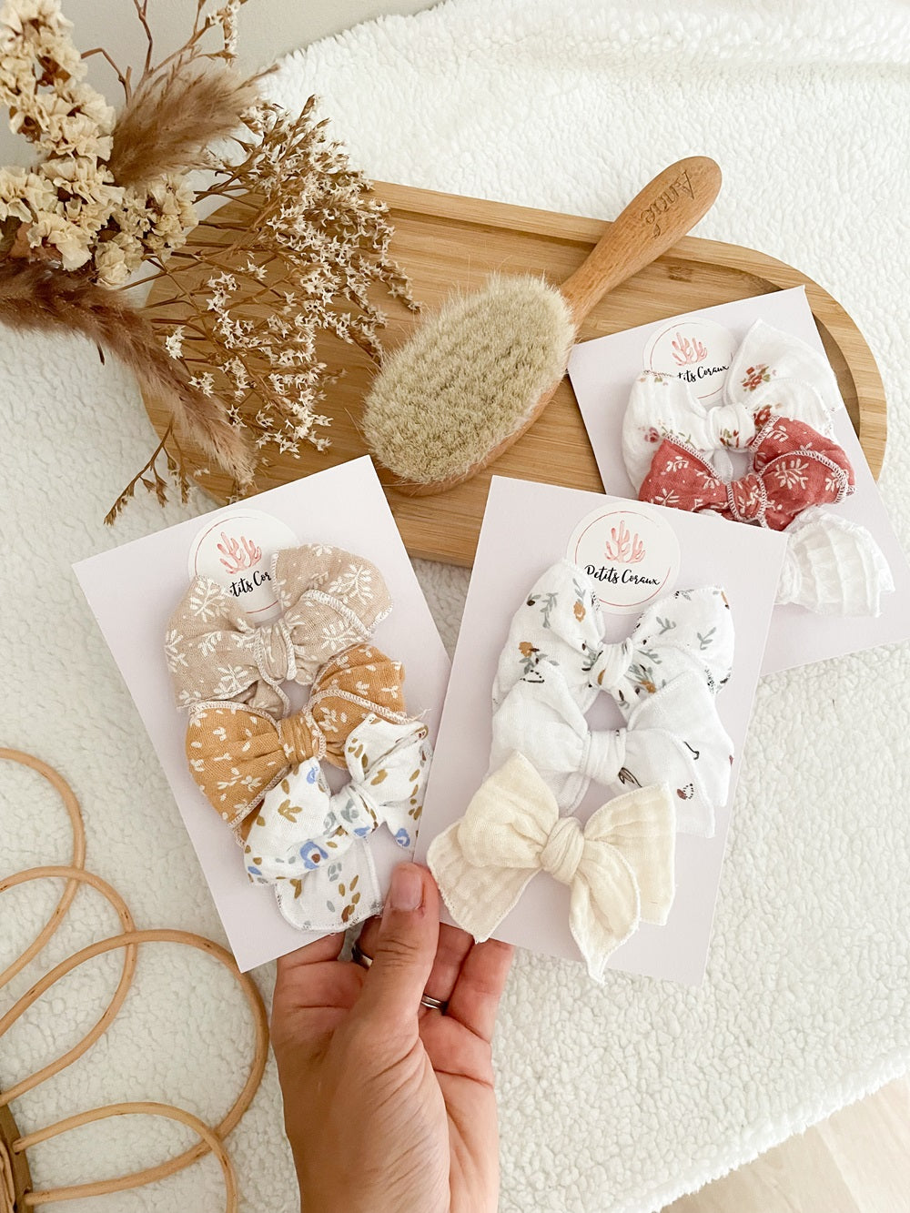 Nos nœuds sont montés sur une barrette "crocodile" qui s'adaptera à tous types de cheveux.