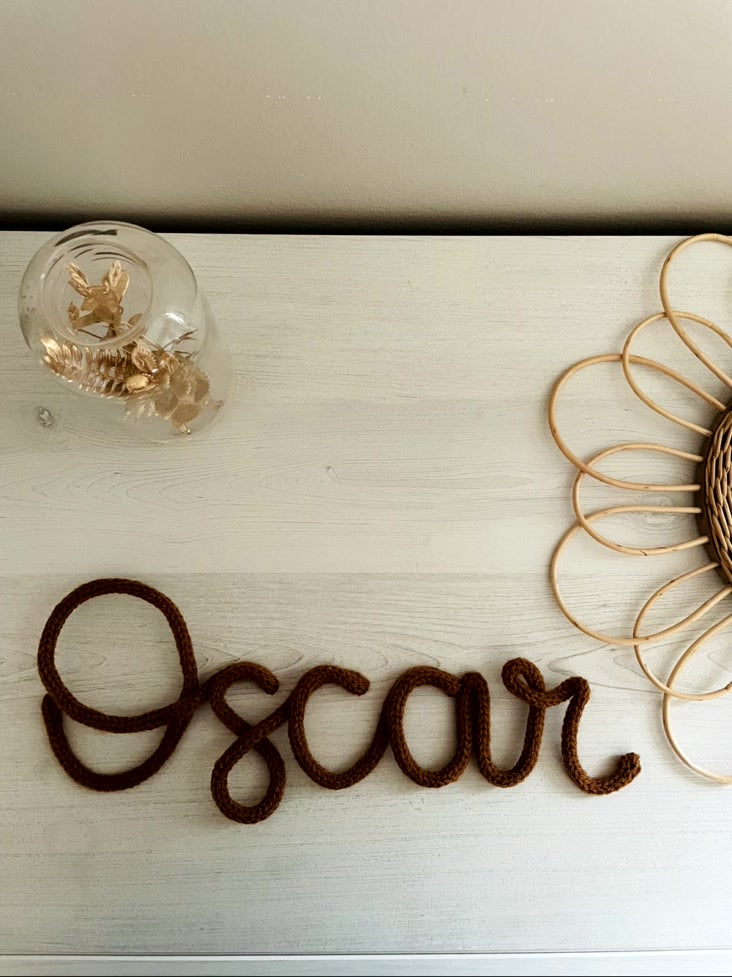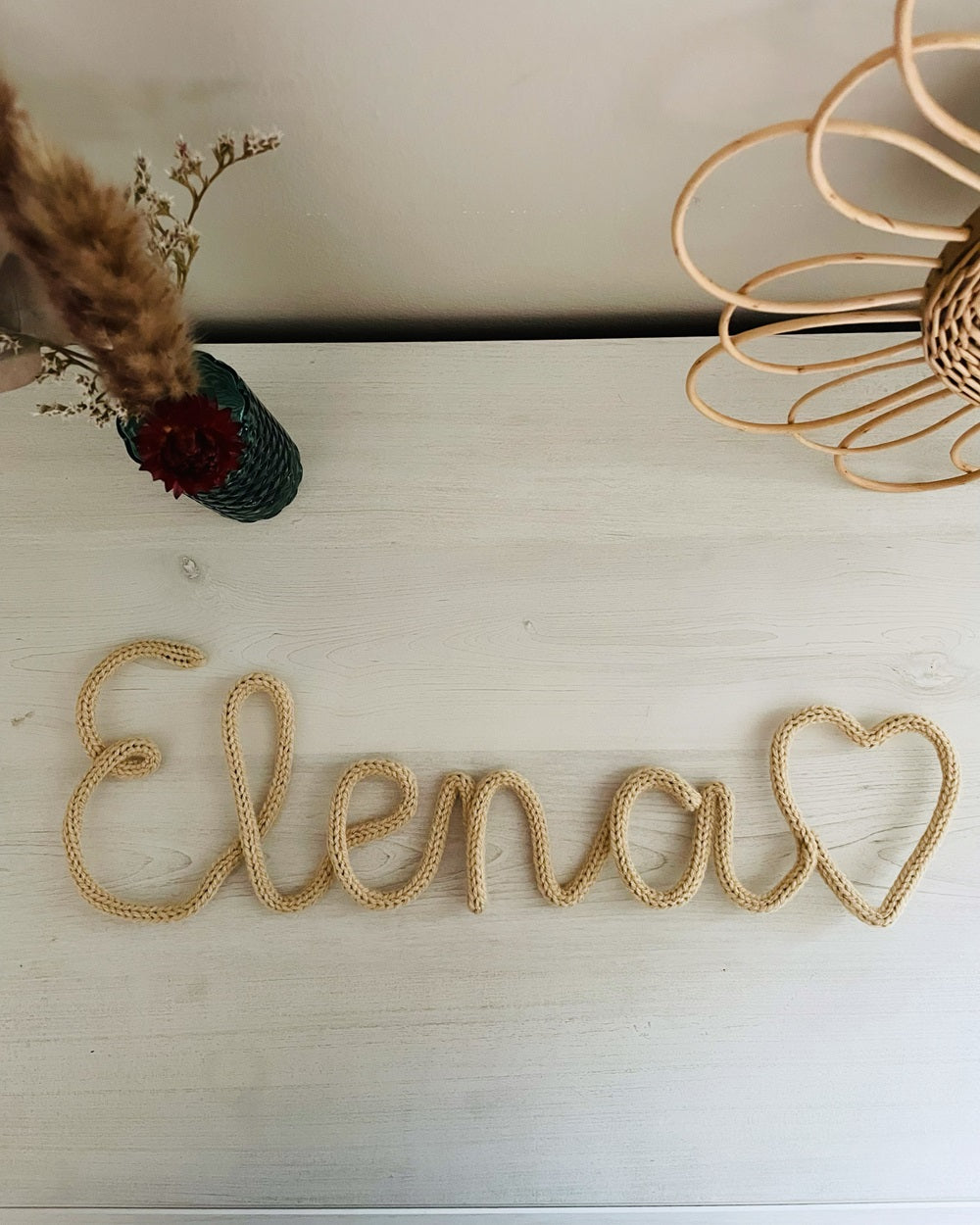 Les prénoms en tricotin sont parfaits pour décorer les murs d'une chambre d'enfant, pour mettre sur une porte, ou pour poser sur une étagère.